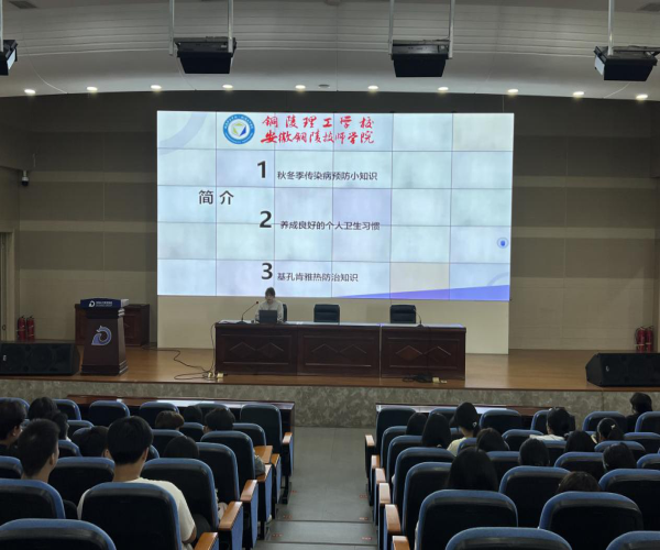 为加强秋冬季传染病预防,促进学生身心健康发展,做好全体学生心理调适,帮助学生防止近视发生,宣传爱耳防聋知识,巩固口腔健康成果,培养学生养成良好个人卫生习惯。根据铜陵市教体局文件要求,学校于2025年9月22日下午2:30在图文信息楼九楼报告厅开展“身心共护、健康同行”健康教育活动,深入推进实施健康促进行动。