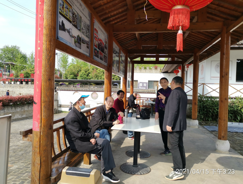 在红旅小镇的大门前,所有到访老干部合影留念,并重温入党誓词;在红旅小镇的长廊上,老干部们围坐在一起,进行了座谈。大家围绕建党百年的光辉历程和我们党所取得的丰功伟绩,畅谈中国的新发展、新速度。通过座谈,老干部们更加坚定了对共产党的信仰,再次抒发了对共产党的忠诚情怀。