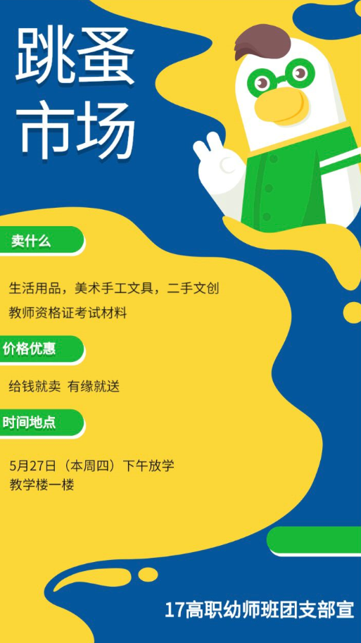 为给毕业生提供一个展现自我交际能力的平台,提升就业创业能力,在经信部团总支的组织下,5月27日下午, 17高职幼师班全体毕业生在教学楼一楼搭建“校园跳蚤市场”,处理个人闲置物品,以公平交易的形式“变废为宝”。