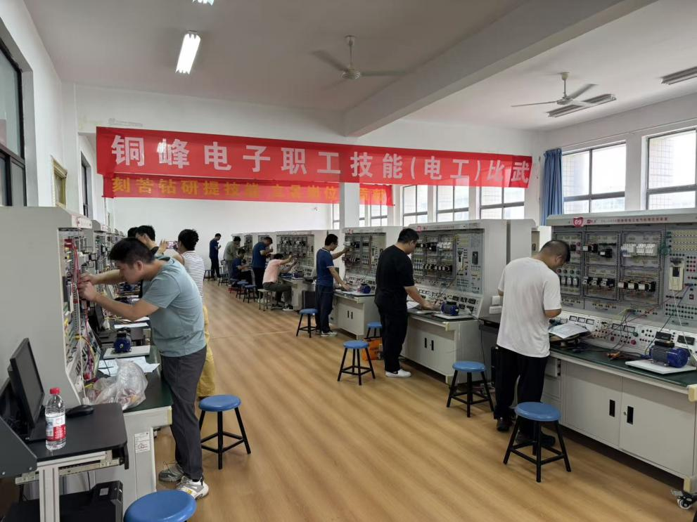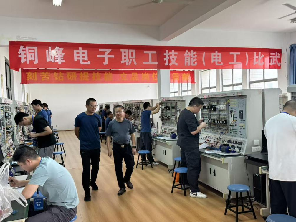 9 月 13 日,铜峰电子公司精心组织的 2025 年职工技能(电工)比武在铜陵理工学校机电工程部圆满举行。为深入落实职工技能提升行动计划,激发职工钻研技术、苦练本领的热情,全面提升电工岗位人员专业素养与实操能力。来自铜峰电子公司各生产车间、技术部门的 18 名参赛选手同台竞技,以赛促学、以赛促练,为企业高质量发展注入技能动能。