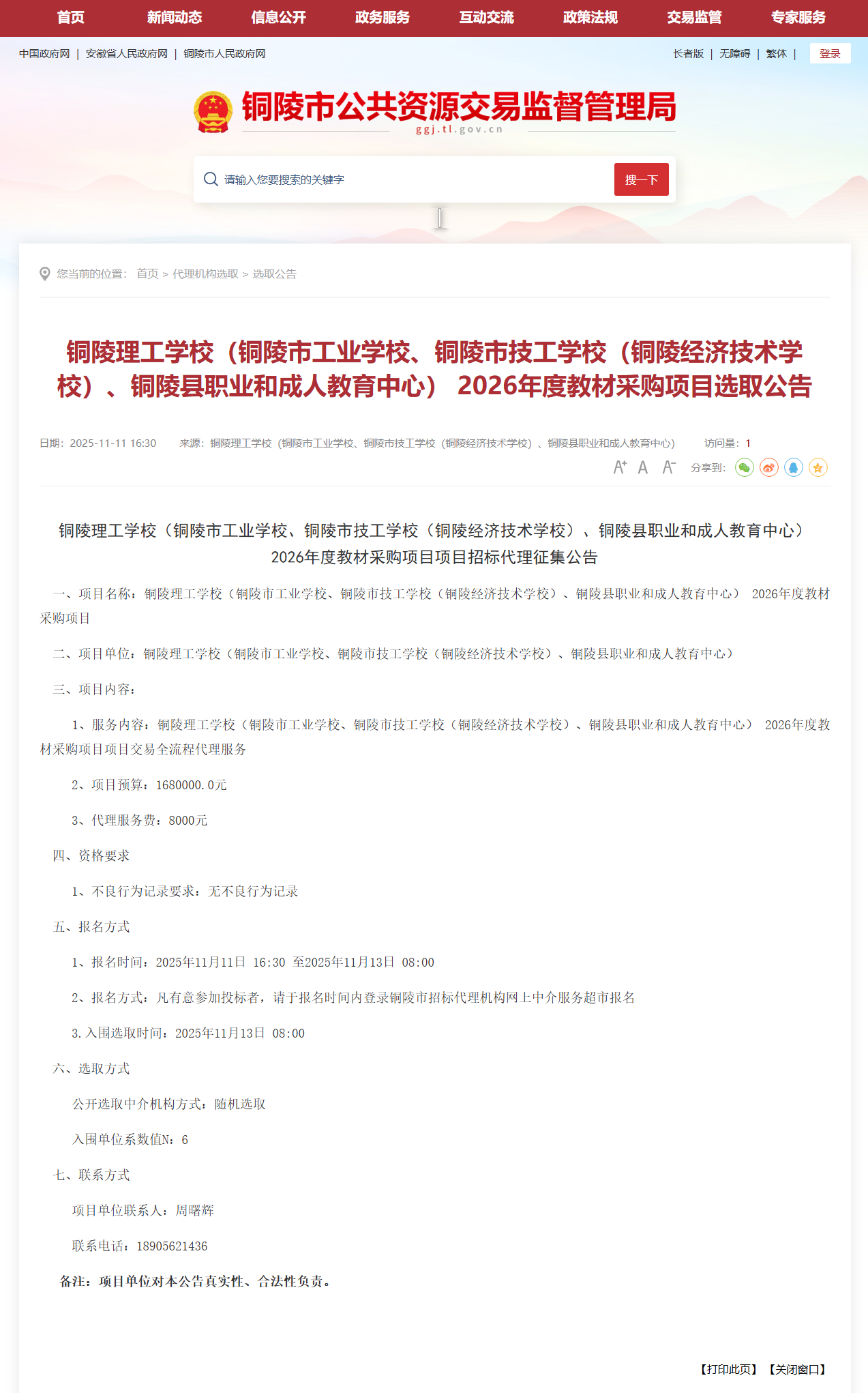 上一条: 铜陵理工学校2026年度教材采购项目选取结果公示