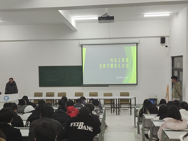 为进一步加强宿舍管理,提高学生参与宿舍管理的"主人翁"感,营造安全和谐的宿舍环境。2月14日晚7点,在艺体楼教室110,汽修部宿管办召开全体住校生寝室长会议。会议由沈全主持,汽修部书记苏新元,校宿管办周卫斌、邢应芝,汽修部团委书记高志骞,全体生活指导老师和全体住校生寝室长参加。本次会议项目从钉钉软件使用,寝室长下分工责任制,后勤财产统计和报修,安全管理等多个方面进行讨论。最后,苏书记强调:安全第一、落实“寝室长下分工责任制”、四个“要有”(责任心、目标、思路、方法)。
