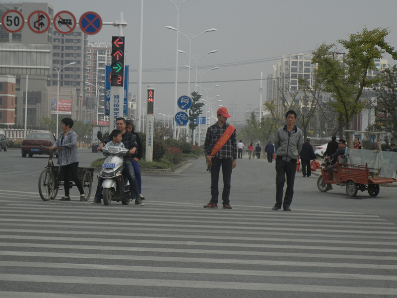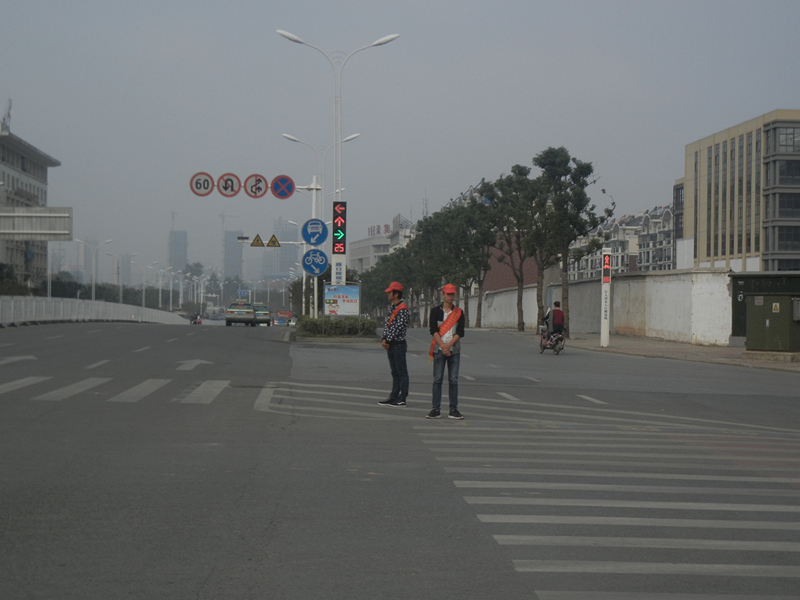 我校15名青年志愿者,头戴红色志愿者服务帽,身披“铜陵市中职中心青年志愿者”绶带,分散在翠湖一路与西湖大道交叉的各路口,以饱满的热情投身文明创建活动中。志愿者们不畏雾霾天气,耐心地劝导、纠正行人乱穿马路、闯红灯等不文明行为;志愿者们以文明的语言、良好的服务,展示了我校学生的良好形象。