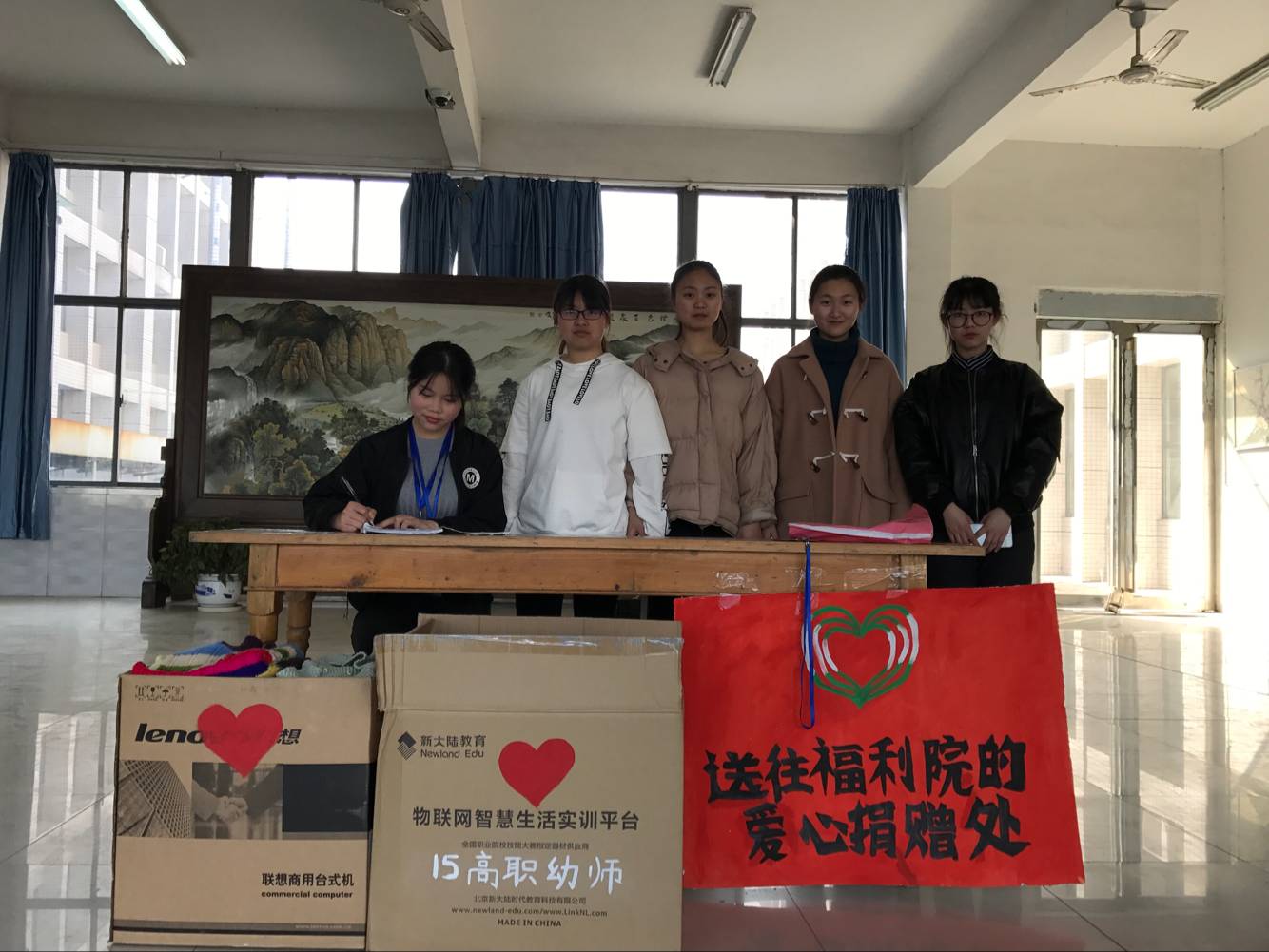 此次爱心捐赠活动,由校团委发起,得到了全校师生的支持与帮助,很多老师、同学将家中的的旧衣物、图书带到学校,放入事先准备好的捐赠箱,由志愿者们负责收集、整理、分类,最后捐赠予福利院。通过此次爱心捐赠活动,感受到了来自全校师生的暖暖温情。