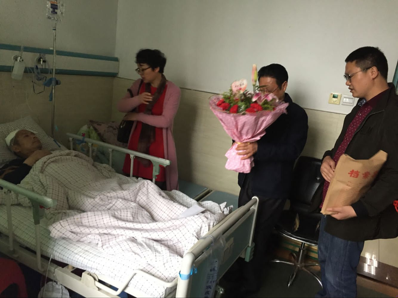 从3月20日开始,各班级开始积极捐款,许多同学在网上留言,祝福钱昊天同学的父亲早日康复。经过一周的捐助活动,我校师生共计捐助现金两万肆仟肆佰贰拾肆元整,网上筹款叁万余元。3月27日,校团委张小祥老师、吴敏老师、吴琼老师和学生代表伍秀莲同学一行四人来到医院,送上我校全体师生的祝福和捐款,钱昊天的家人对我校师生表示衷心的感谢。