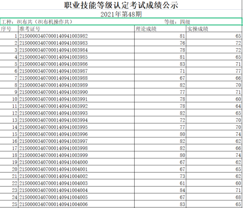 职业技能等级认定考试成绩公示